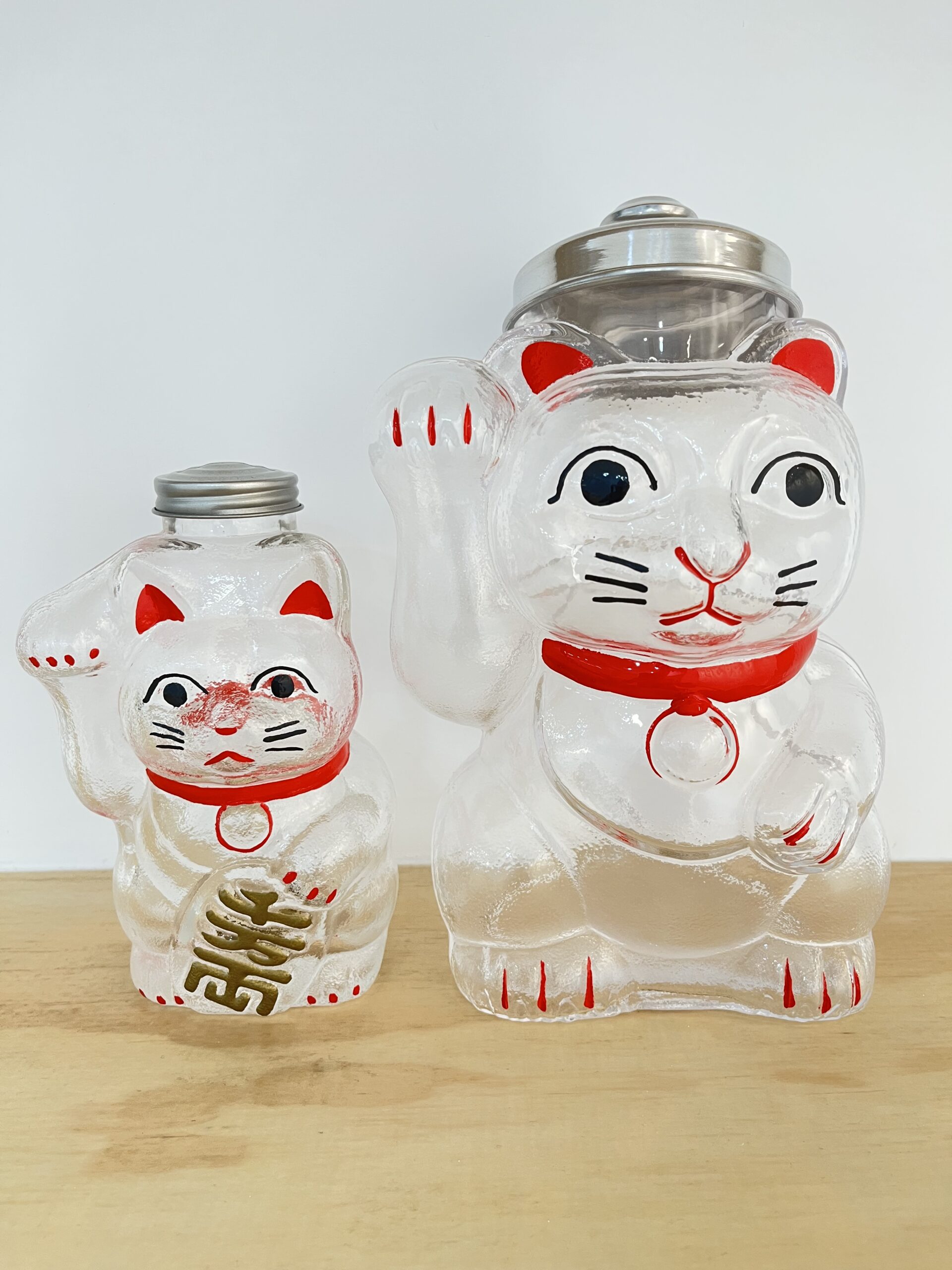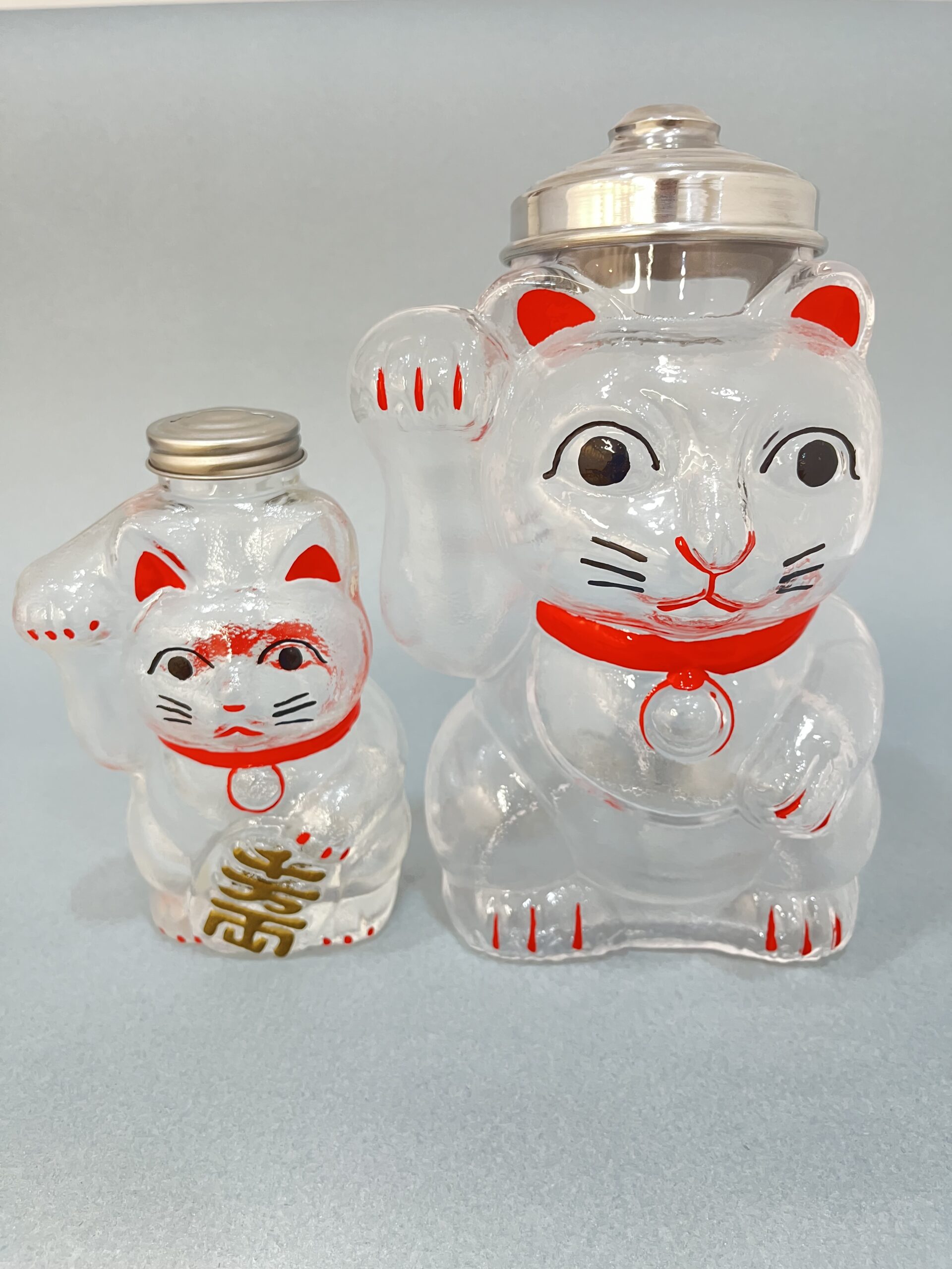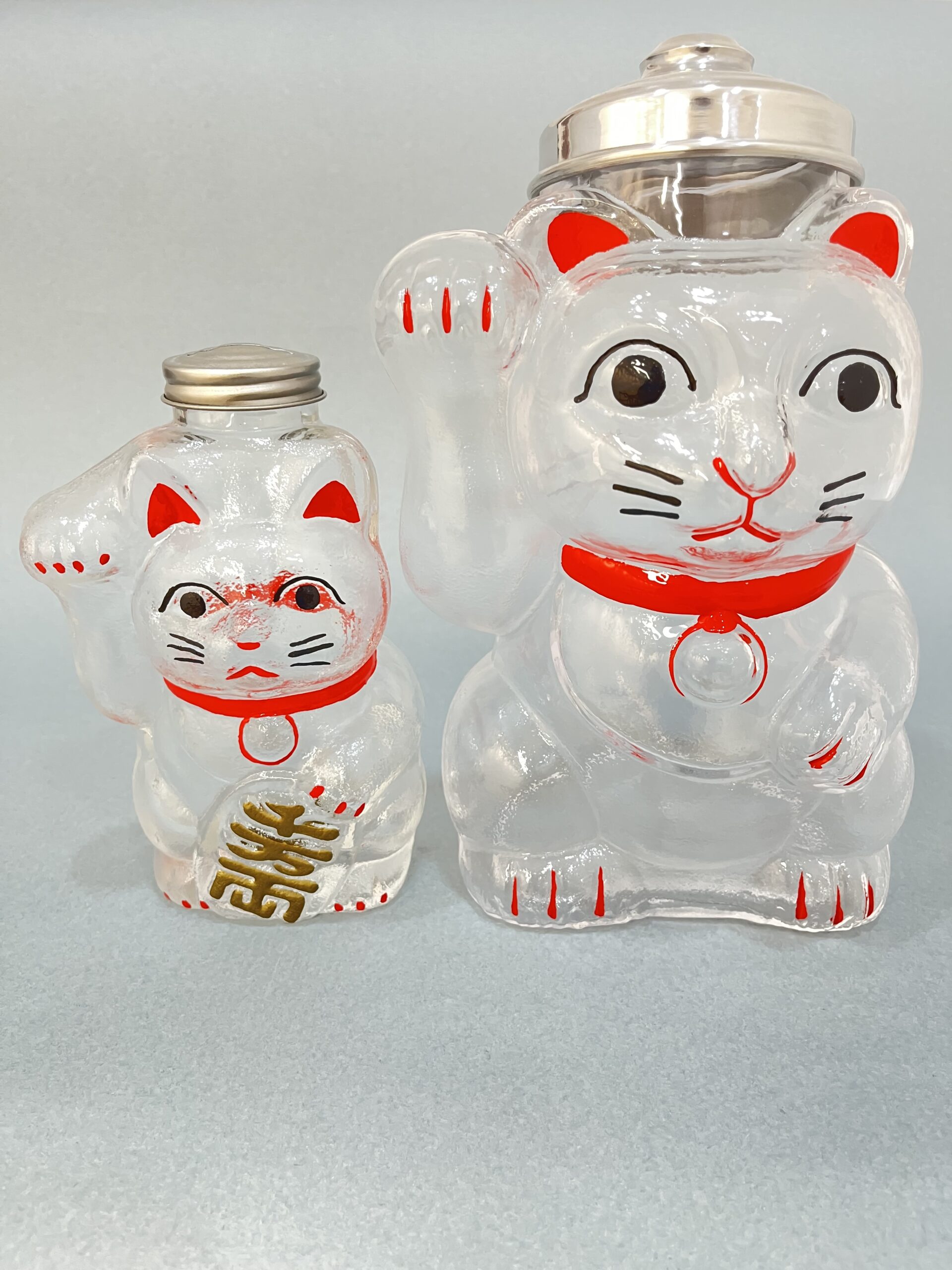🍰產品規格 ■尺寸約為: 小貓 長10.5 寬9.5 cm 大貓 長24.5 寬14.5 cm ■重量:約1300克 ■材質:玻璃 蓋子:鋁 ■原產地:日本