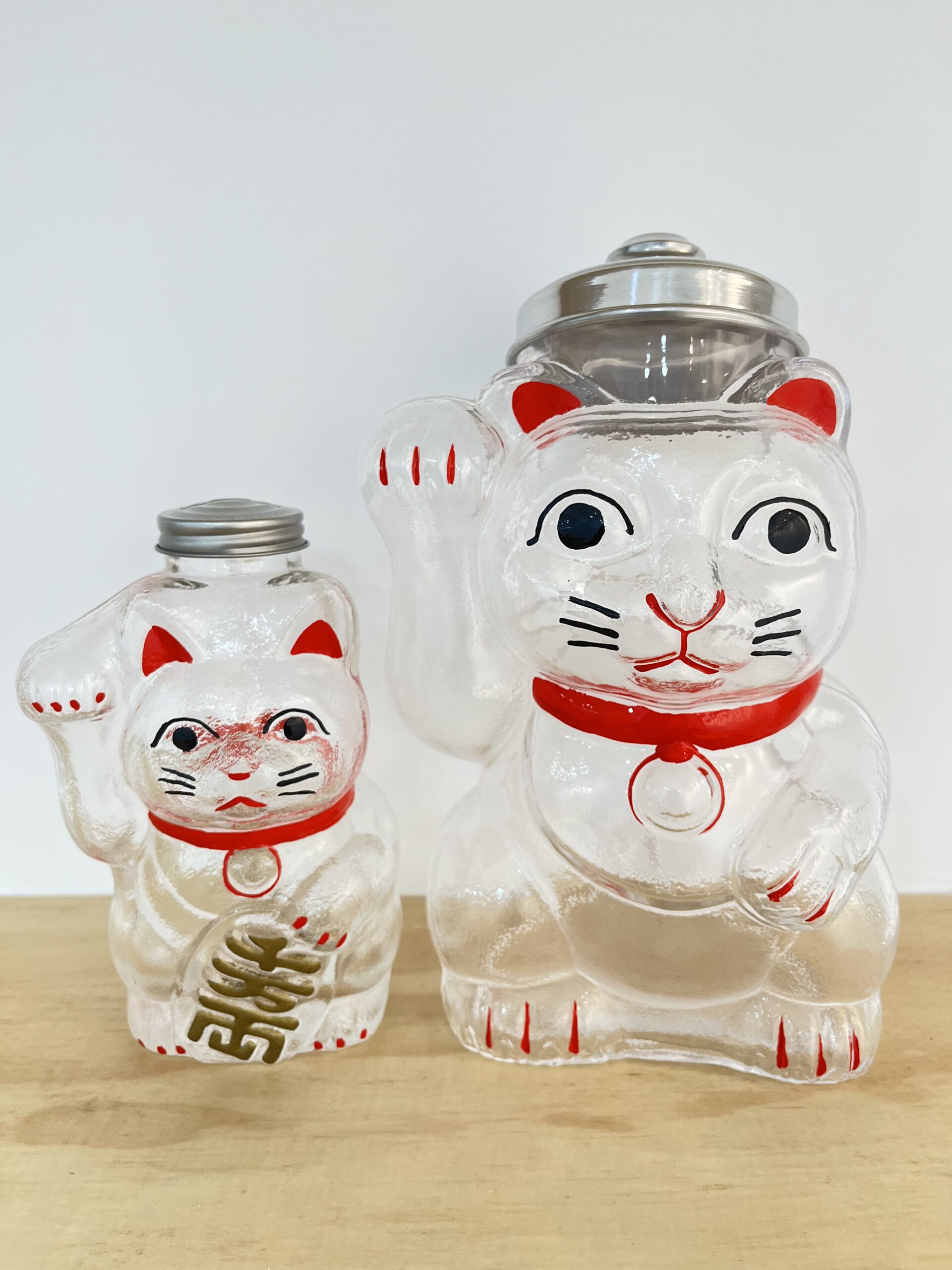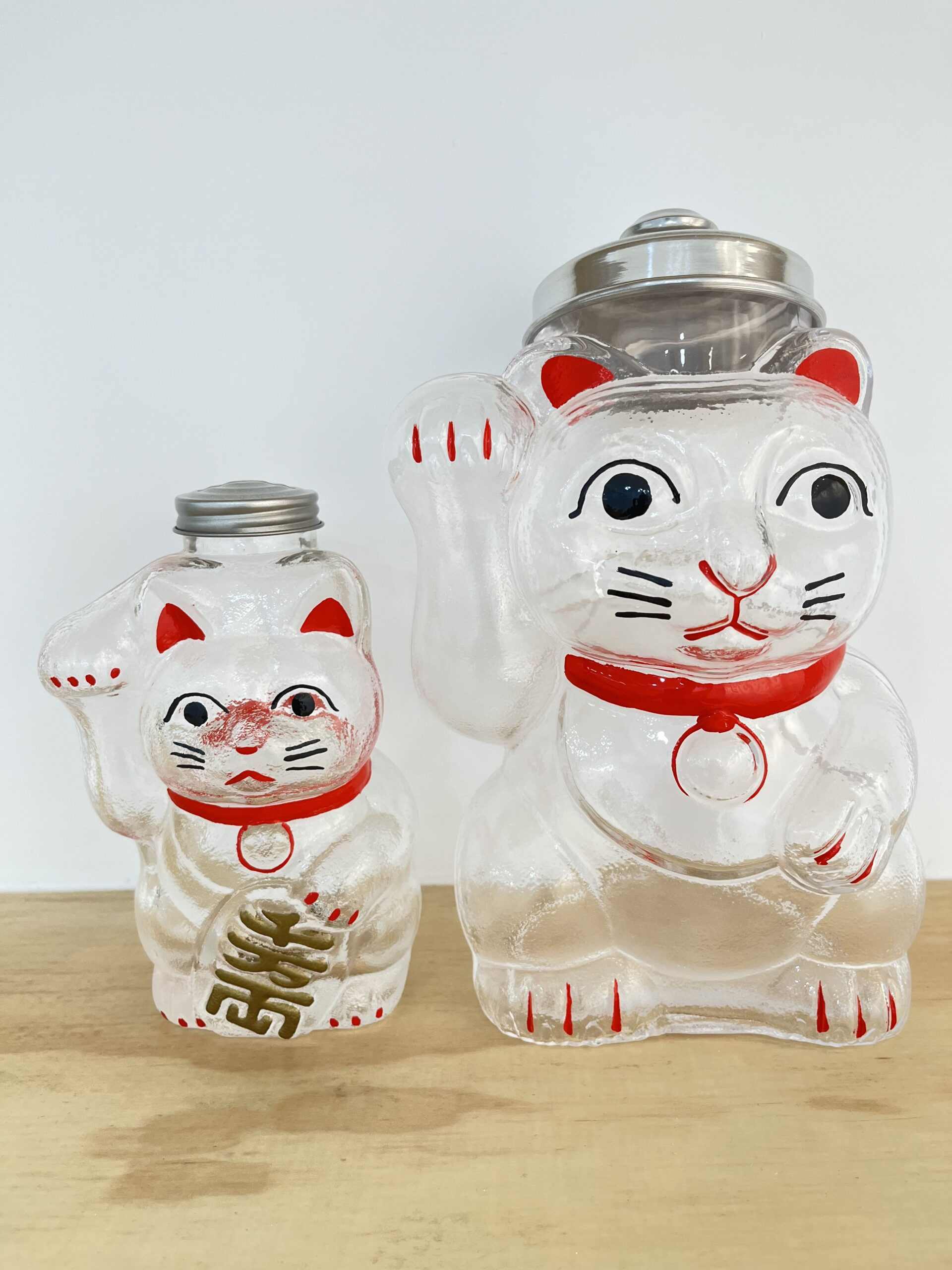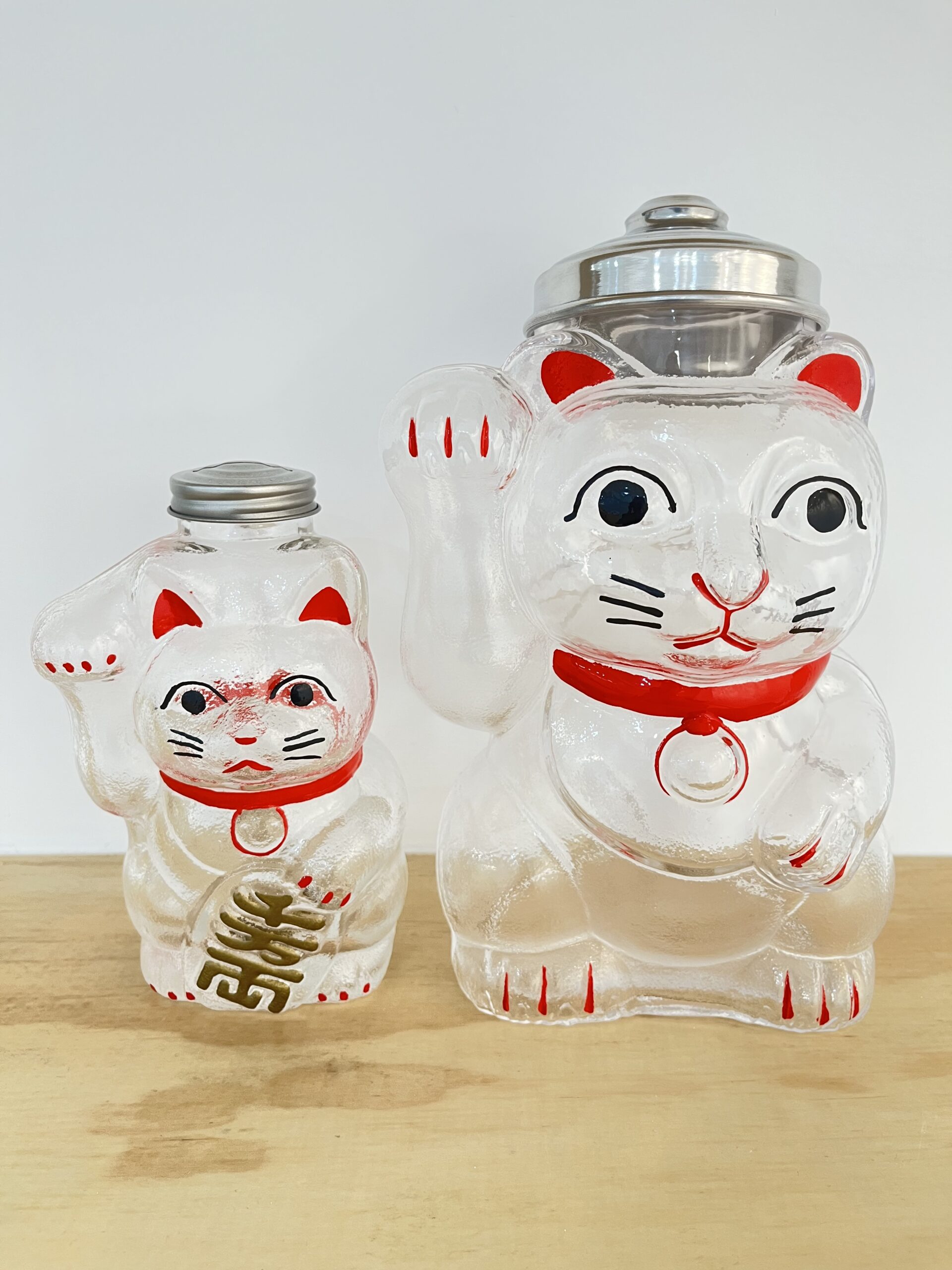 🍰產品規格 ■尺寸約為: 小貓 長10.5 寬9.5 cm 大貓 長24.5 寬14.5 cm ■重量:約1300克 ■材質:玻璃 蓋子:鋁 ■原產地:日本